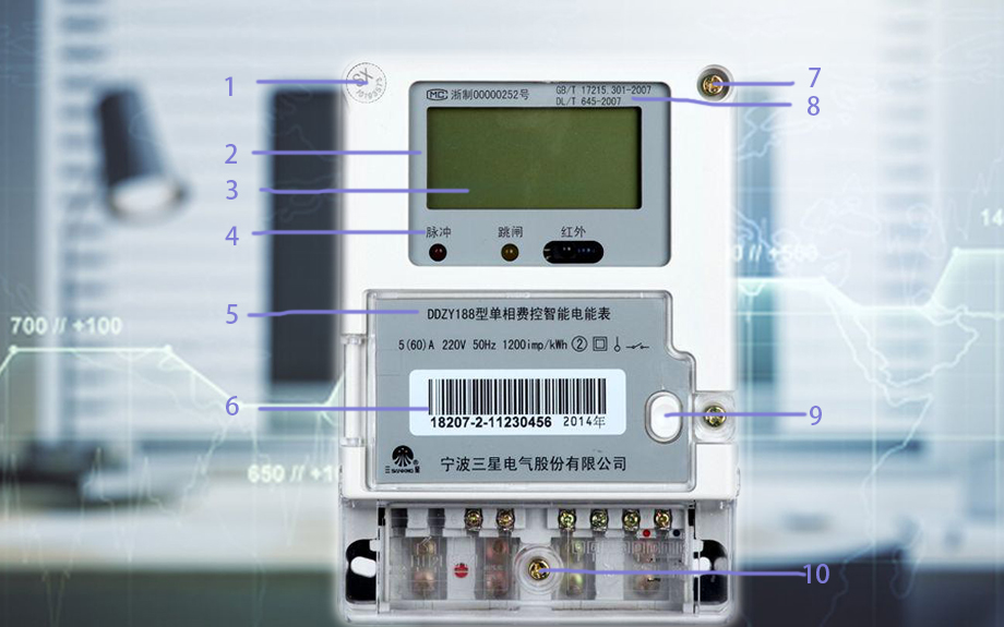 1、商標(biāo)。2、相數(shù)、線數(shù)的符號(hào)。3、電能表的名稱及型號(hào)4、A即電能表的基本電流值為1 5A,額定很大電流為6A。如果額定很大電流小于基本電流